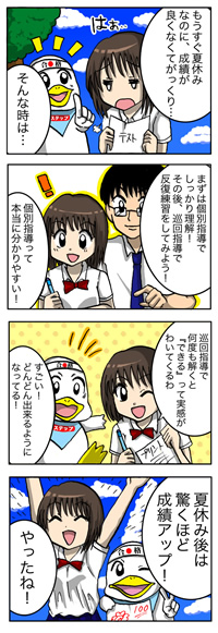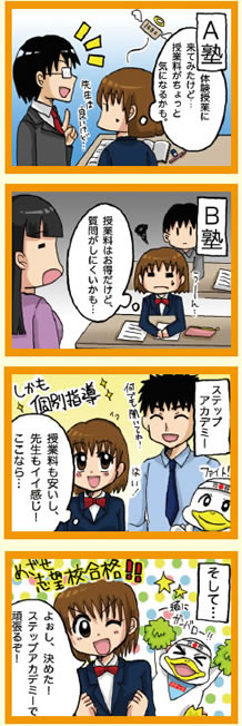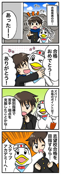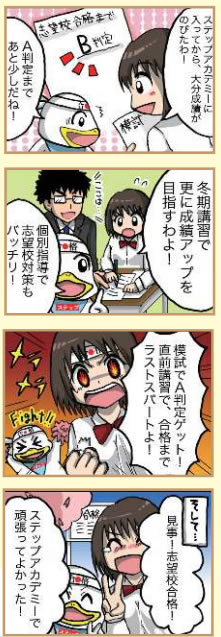 その日から、ステップ君は来る日も来る日も生徒さんの成績アップを心の底から祈り応援し続けた。